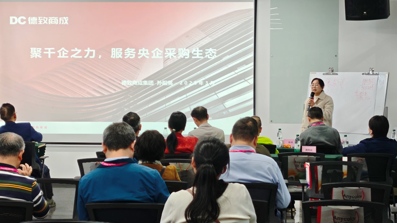 同时,众多嘉宾的演讲更是精彩不断,现场氛围热烈而融洽。领先未来徐婷婷着重为大家介绍了《领先未来》多元采购场景,一站式数字化、行业化场景营销体验模式。德致商成孙阳英为大家介绍了《德致商成》构建国央企电商化采购生态的优势。广州欣彩总经理彭煦为大家详细讲解了《广州欣彩2026年市场竞争优势》,探讨未来的合作方向,为后续精准服务、深化合作奠定了坚实基础。
