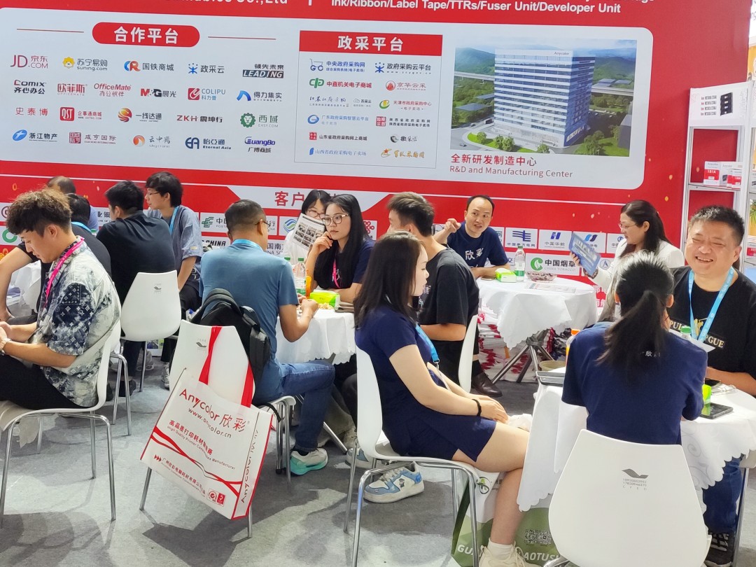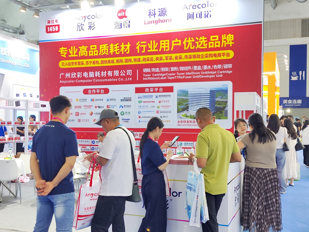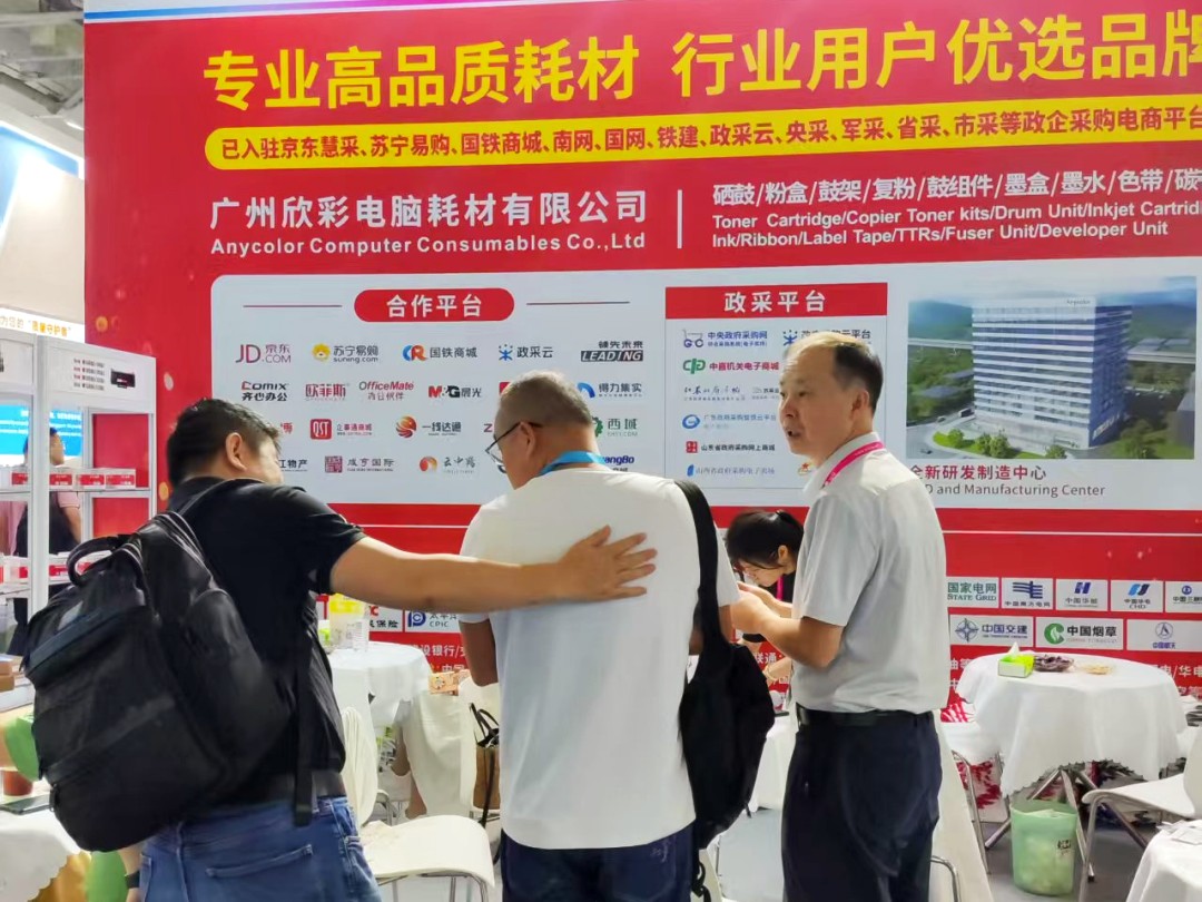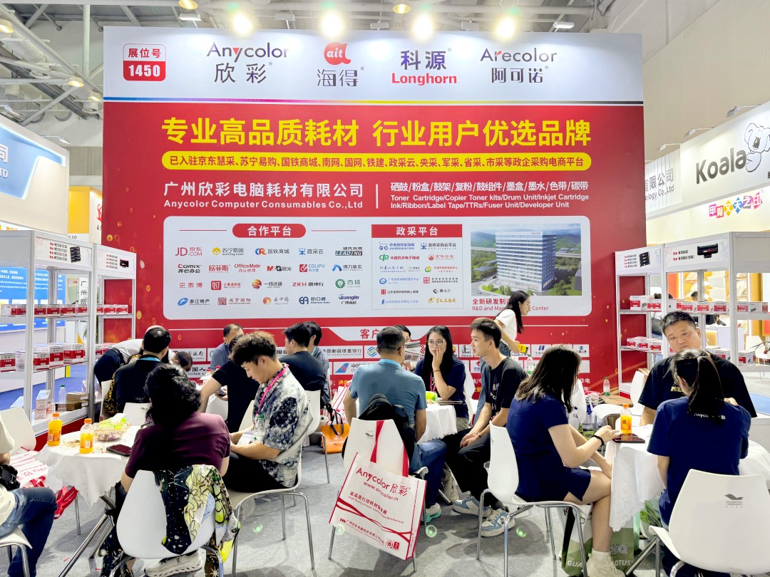 Anycolor Computer Consumables Co., Ltd. is a "specialized, refined, innovative" and "high-tech" enterprise that integrates manufacturing, research and development, and sales of printer and copier consumables. We have been deeply involved in the printer and copier consumables industry for nearly 20 years, with sales channels in all provinces and cities in China. Our products are exported to more than 120 countries and regions overseas. With a good brand reputation and excellent product quality, the exhibition site has attracted numerous purchasers and professional buyers from different countries and skin colors around the world to exchange and negotiate cooperation.